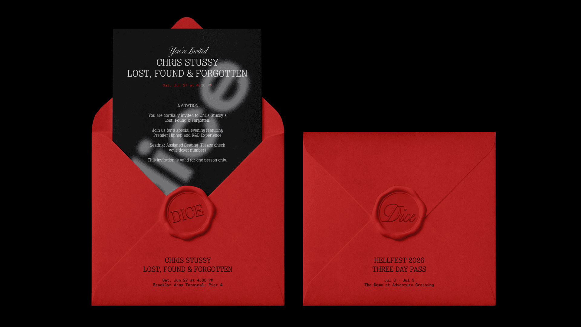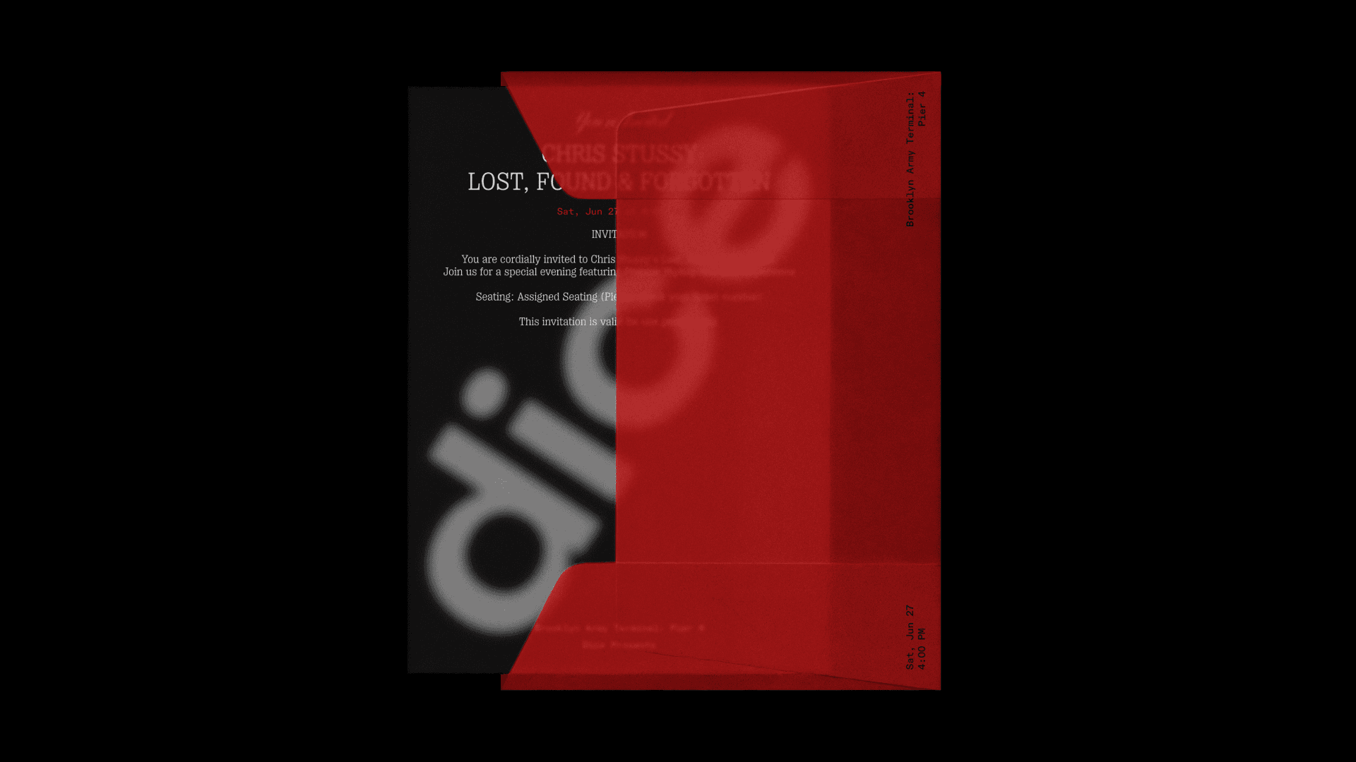 Reimagining Dice as a tactile digital artifact shaped by the shared energy of artists and audiences. By blending 3D rolling dice motion with the tradition of physical invitations, the brand becomes a site of mutual exchange where the act of entry is as visceral as the event itself.