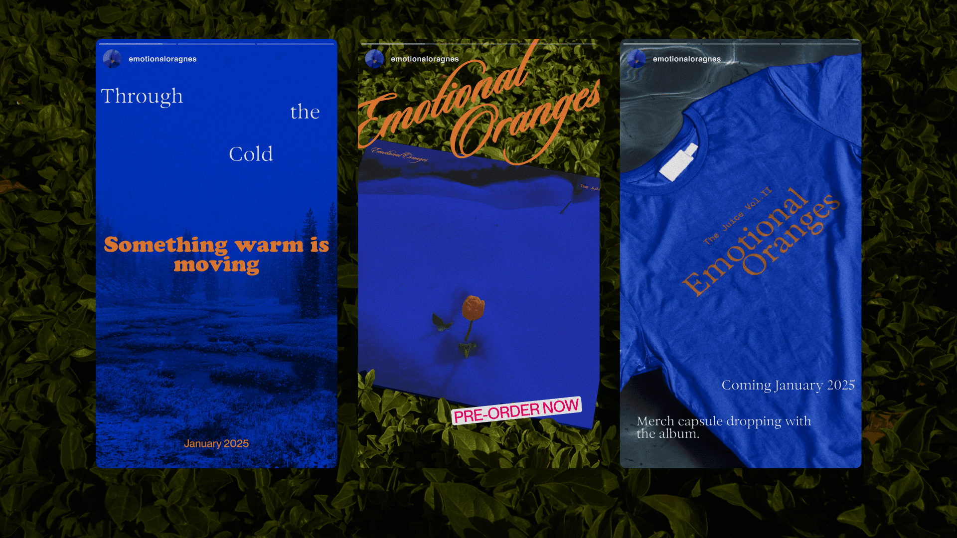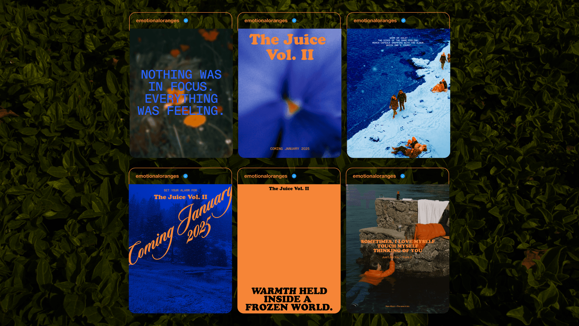 In The Juice Vol. II vinyl project, it translates the album’s emotional landscape into a physical and visual system centered on contrast. Built around the concept Warm Body, Cold Light, the project explores intimacy existing within distance, warmth surviving inside a cold world. Through temperature-based color logic, tactile materials, and atmospheric imagery, the vinyl package visualizes emotional duality, where softness and detachment, clarity and blur, coexist outside a fixed emotional timeframe.