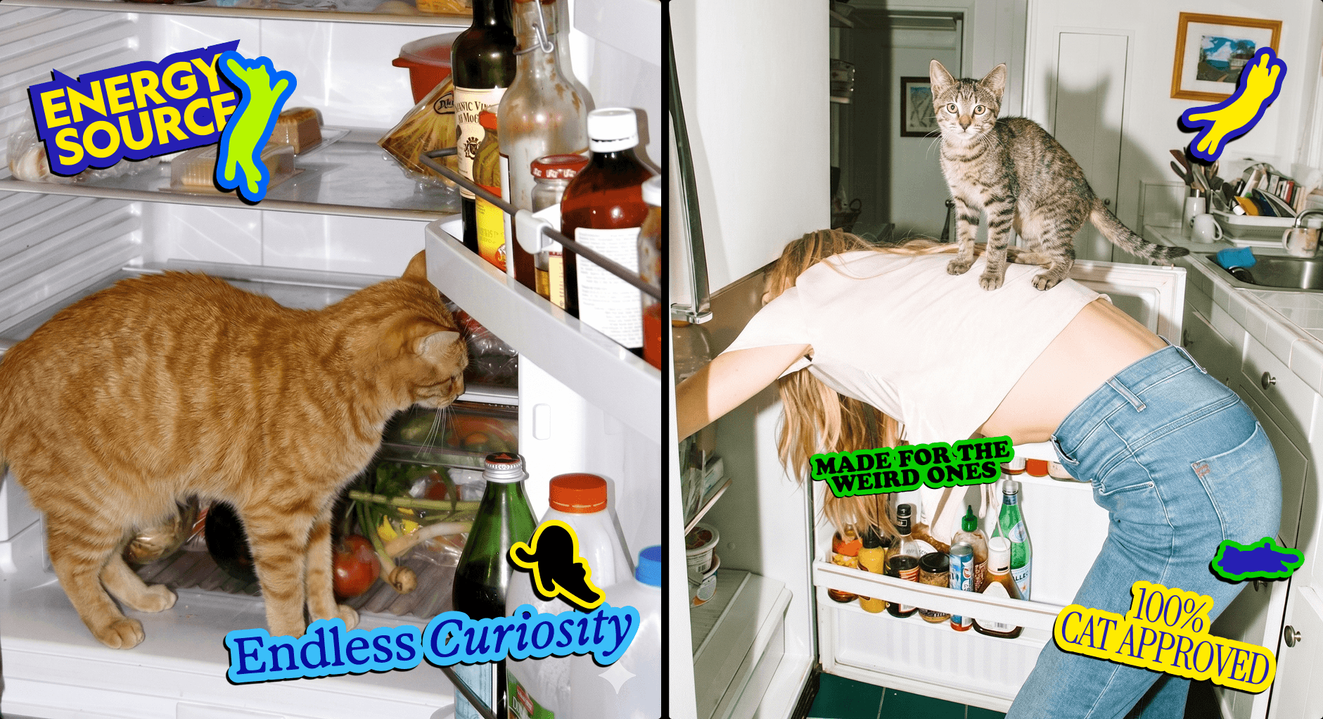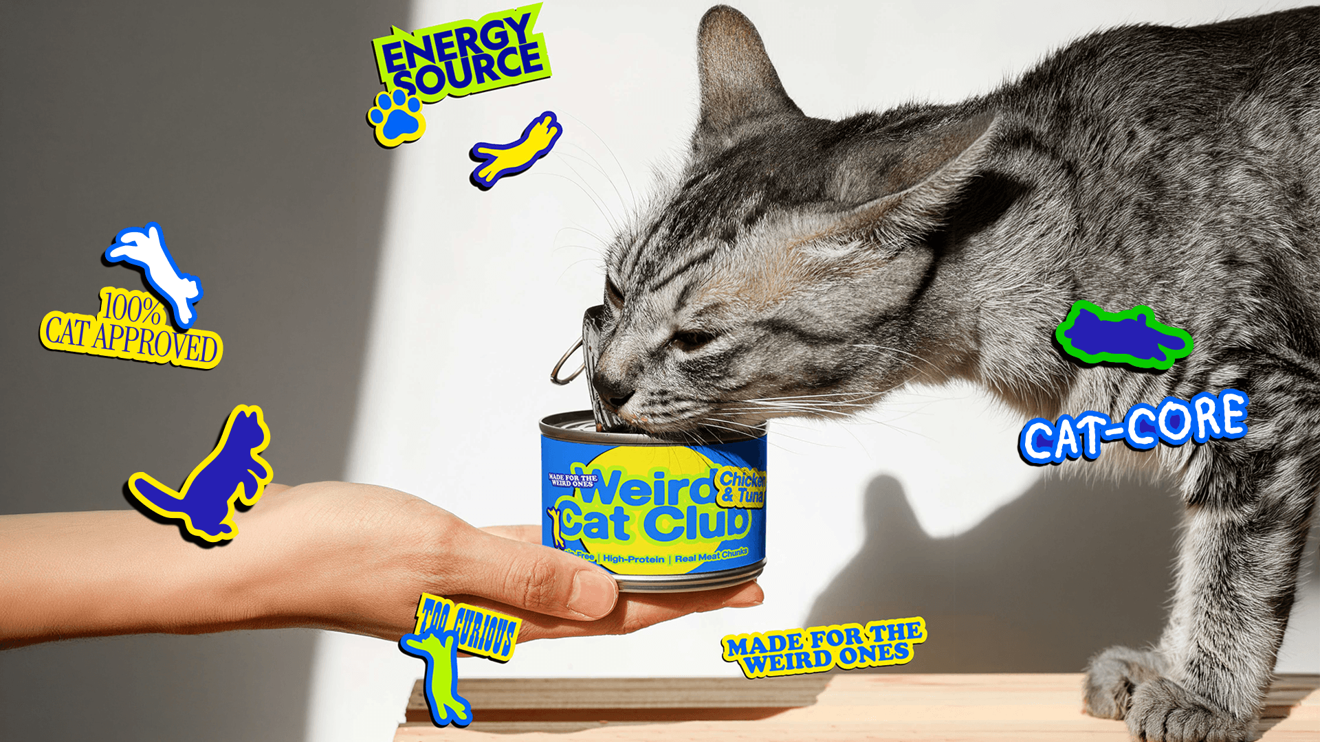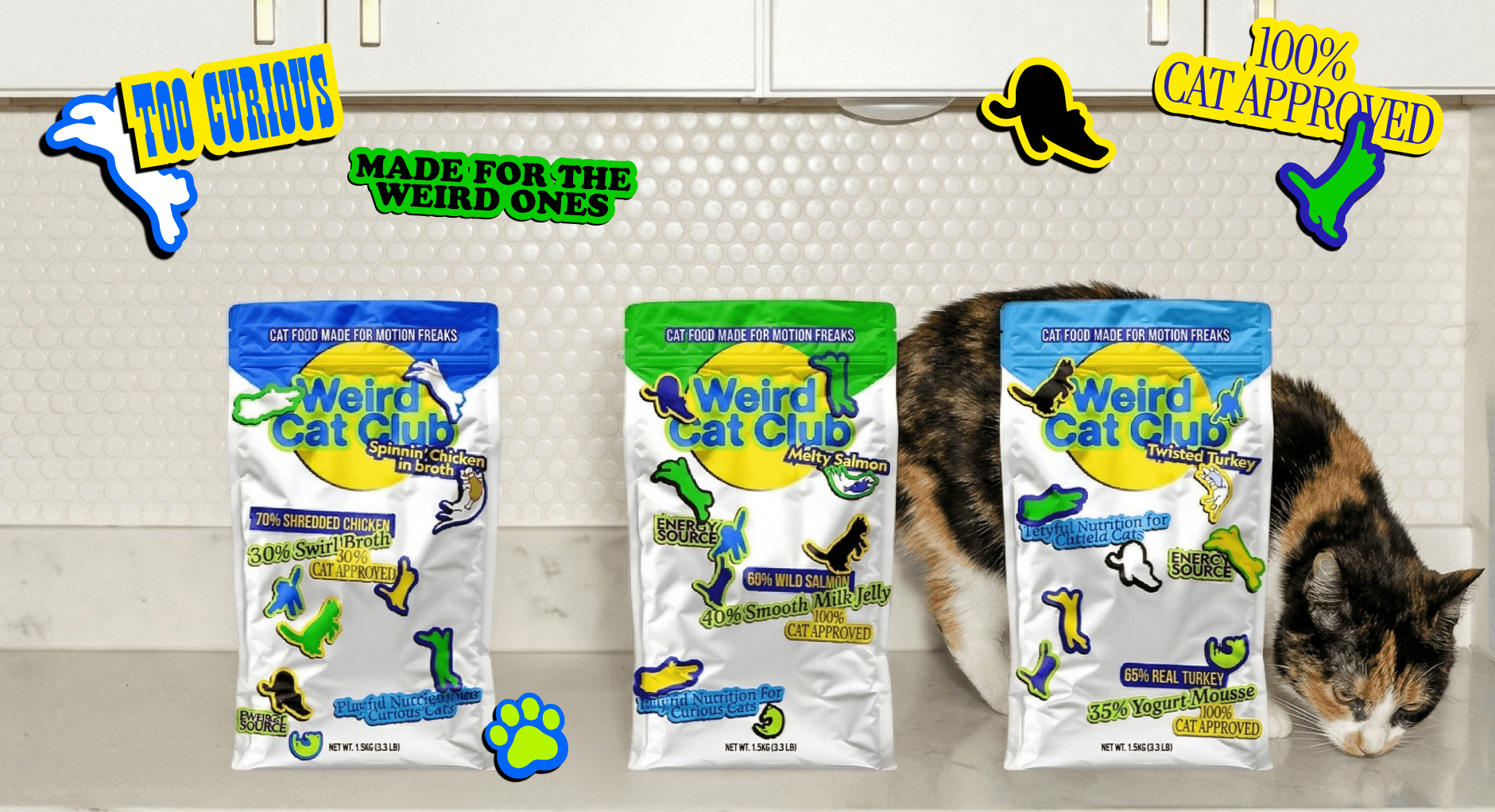 Cats are actually weird and strange. Embracing the true identity of cats, their strangeness, unpredictability, and exaggerated behavior, the brand actively welcomes chaos, repetition, and imperfection, celebrating individuality through a playful system that resists conventional pet brand aesthetics.